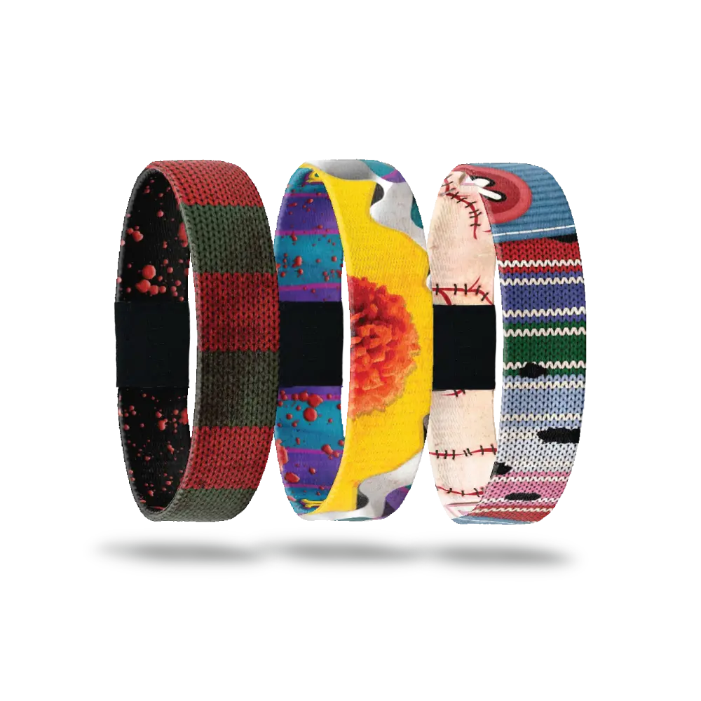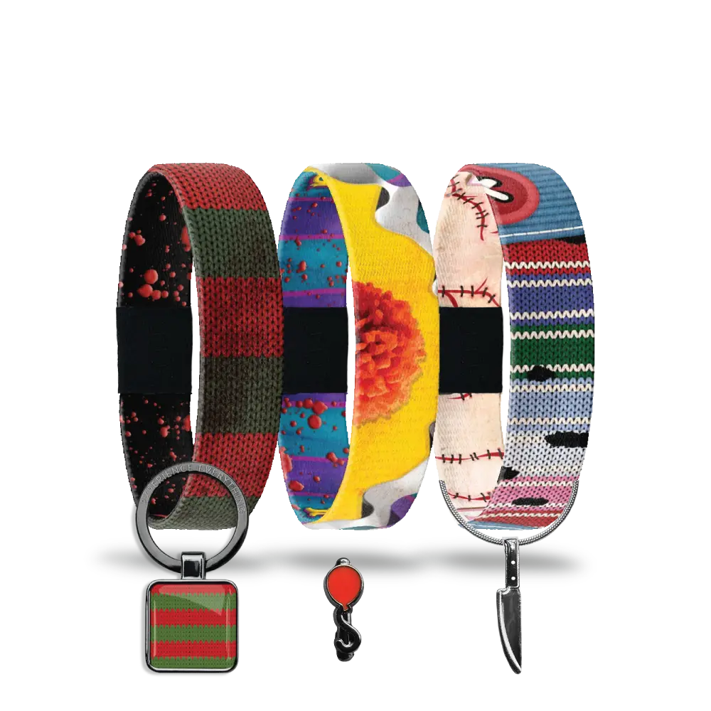 And here's the really fun part - this isn't just three bracelets. Each one comes with its own special surprise that adds to the magic. You'll discover a whimsical balloon charm, an edgy knife necklace, and an exclusive ZOXLOX you won't find anywhere else. It's like getting a little treasure box of Halloween nostalgia.