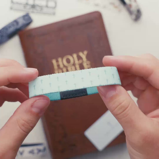 The new Faith Bible Bracelets set includes 4 of our favorite interactive Bible verse bracelets for strengthening your daily walk with Jesus: