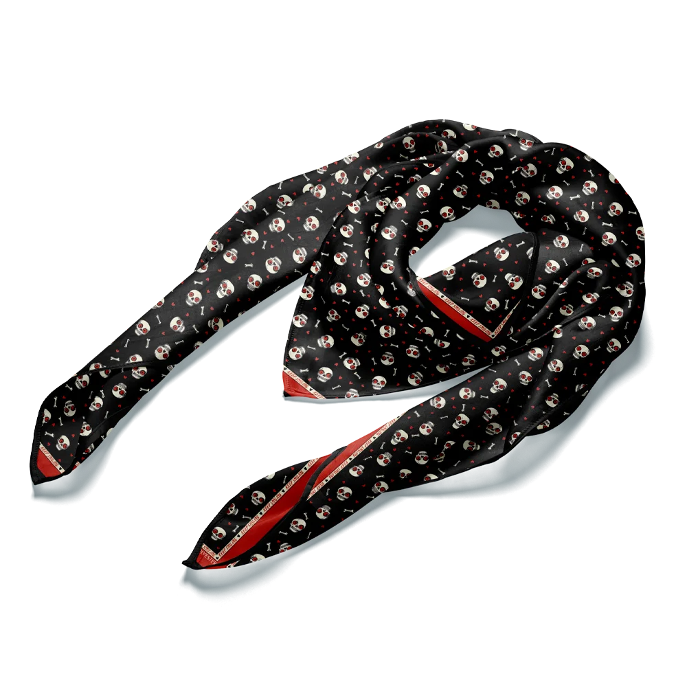 Wrap yourself in the reminder that joy is your superpower, even in the face of what scares you. This elegant silk scarf brings the cheerful skull energy of 'Keep Smiling' to life in a way that's as versatile as it is meaningful. Wear it as a neck scarf, headband, or tie it to your bag - however you style it, carry that reminder to grin at what scares you.
